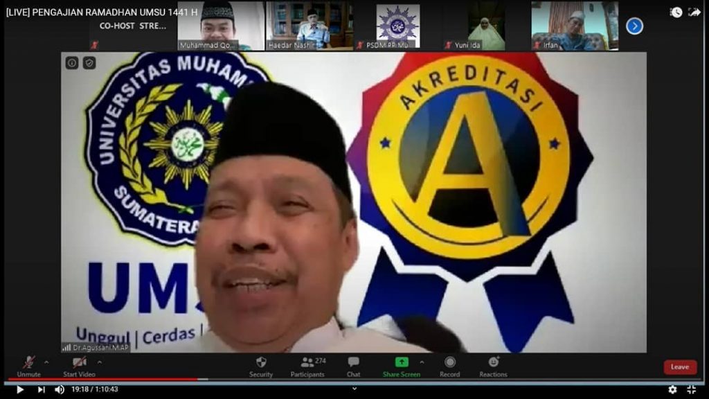 Pengajian Ramadan Online yang diadakan Universitas Muhammadiyah Sumatera Utara (UMSU) bekerjasam dengan bekerjasama dengan Pusat Digital Syiar Muhammadiyah (PSDM) PP Muhammadiyah.