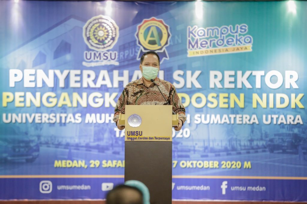 Bersamaan dengan itu juga diserahkan SK Dosen NIDK kepada Dr. Muhammad Yusni SH M.H (Mantan Kepala Kejatisu) dan Dr. KH Amiruddin M.S M.A. (Tokoh Agama) yang dilaksanakan di Kampus Utama UMSU pada Sabtu (17/10).