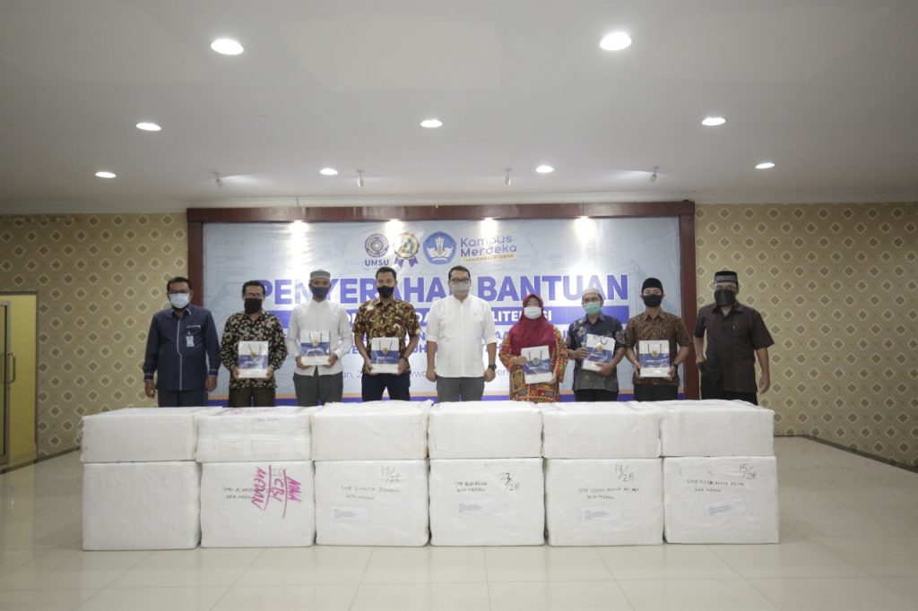 Bantuan yang berasal dari Kementerian Pendidikan dan Kebudayaan diserahkan langsung kepada perwakilan sekolah oleh Rektor UMSU, Dr Agussani, MAP melalui Sekertaris Universitas, Gunawan, SPdI, MTH di aula Kampus, Jalan Kapten Mukhtar Basri.