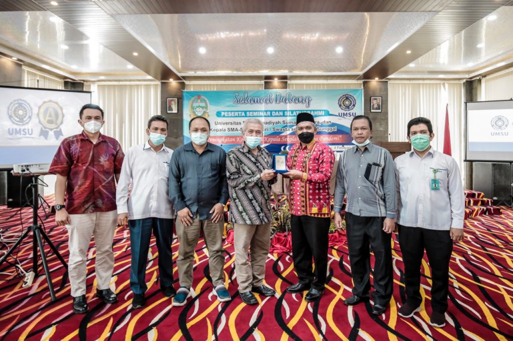 Rektor UMSU diwakili Wakil Rektor I, Dr Muhammad Arifin Gultom, MHum menyampaikan materi dengan tema “Peningkatan Kompetensi Kepala Sekolah di Masa Pandemi”. Dia meminta agar kompetensi kepala sekolah di antaranya kompetensi sosial perlu terus ditingkatkan yakni kepala sekolah harus bisa menjalin kerja sama dengana masyarakat sekitar, atau pihak luar. Seperti dengan perguruan tinggi.